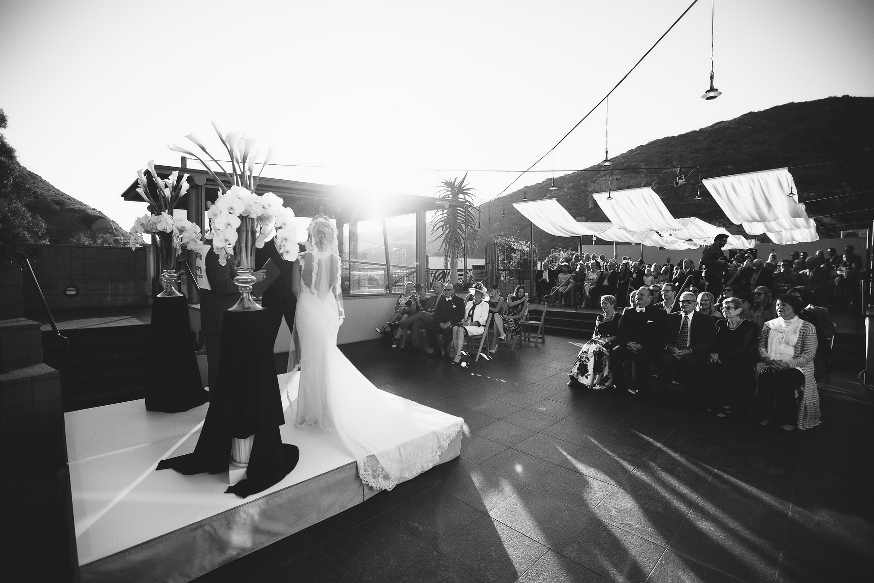 Lacy and Wil planned their ceremony and reception at the modern 7 degrees wedding venue located in Laguna Beach. They were smart and wanted to do a first look, so we could take advantage of all the cool photo backdrops that 7 degrees provides, the bamboo garden, the hallway, and the elevator staircase. The couple chose not to have a bridal party, and for their friends to come and enjoy the event with no obligations.