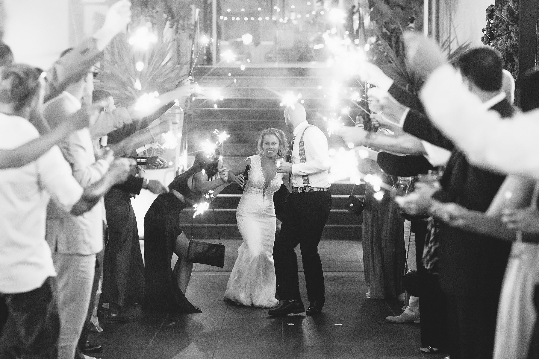 This is one of my favorite images taken at the end of the night, the groom with a drink in each hand, and the american bride wearing fun British flag party glasses, and that expression.