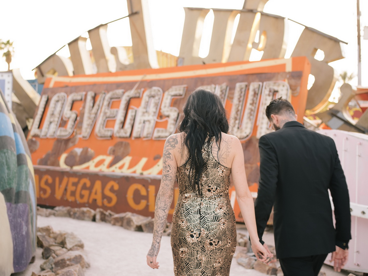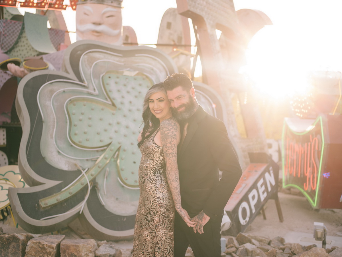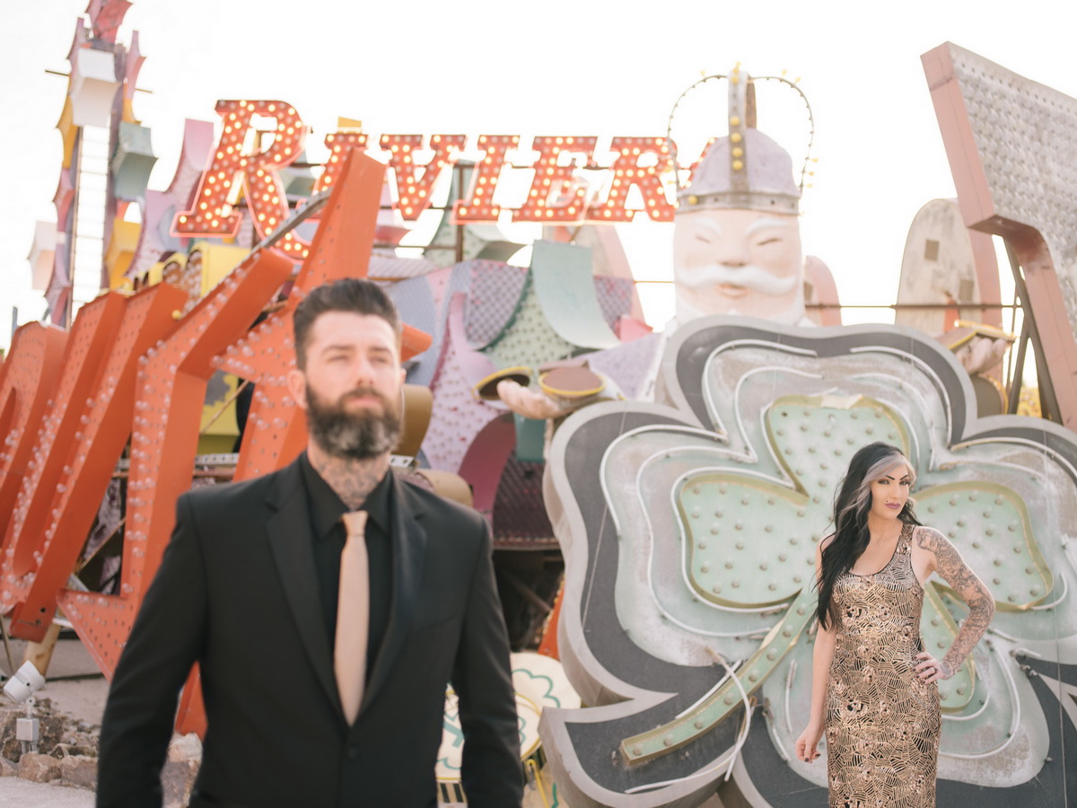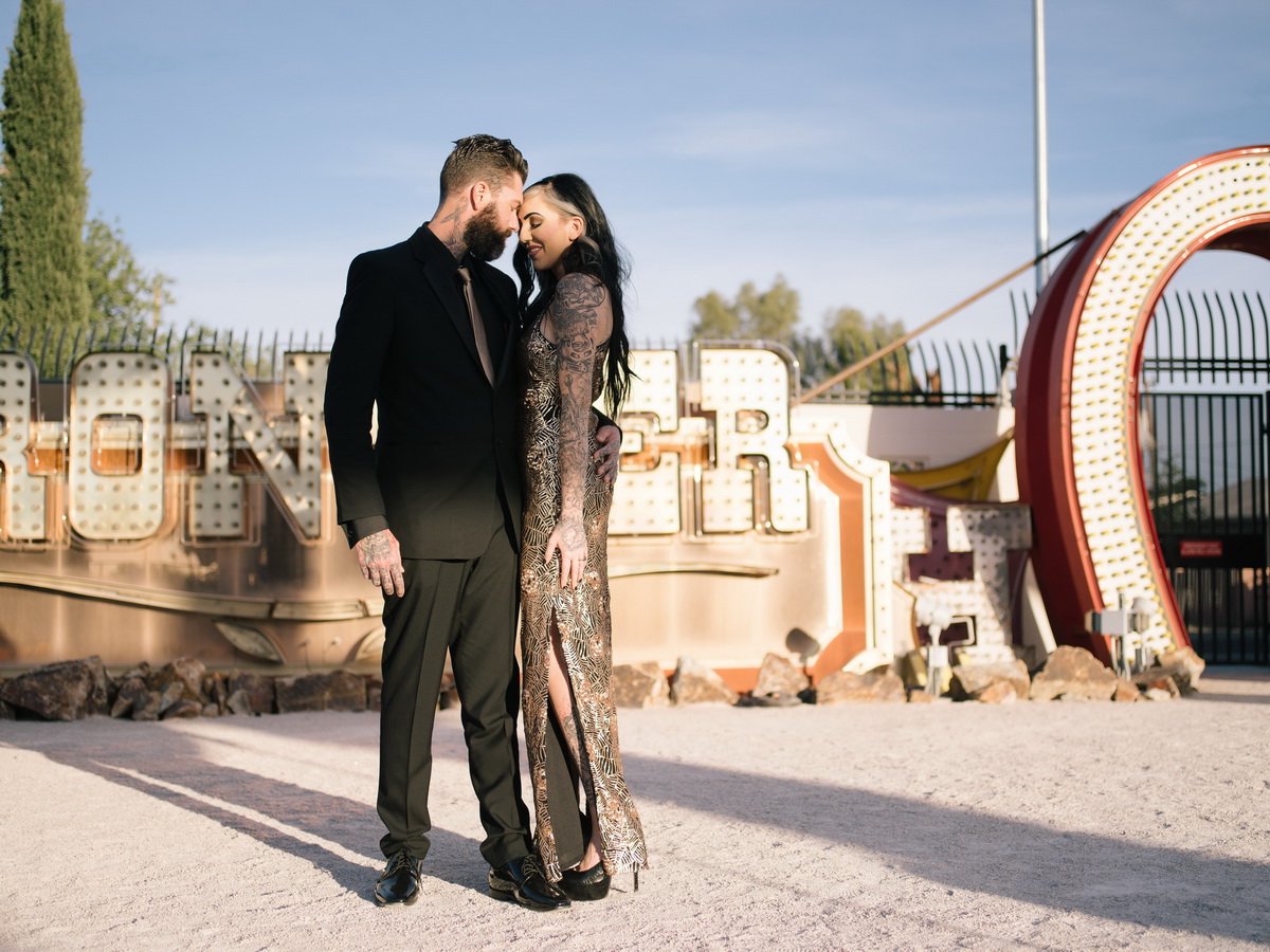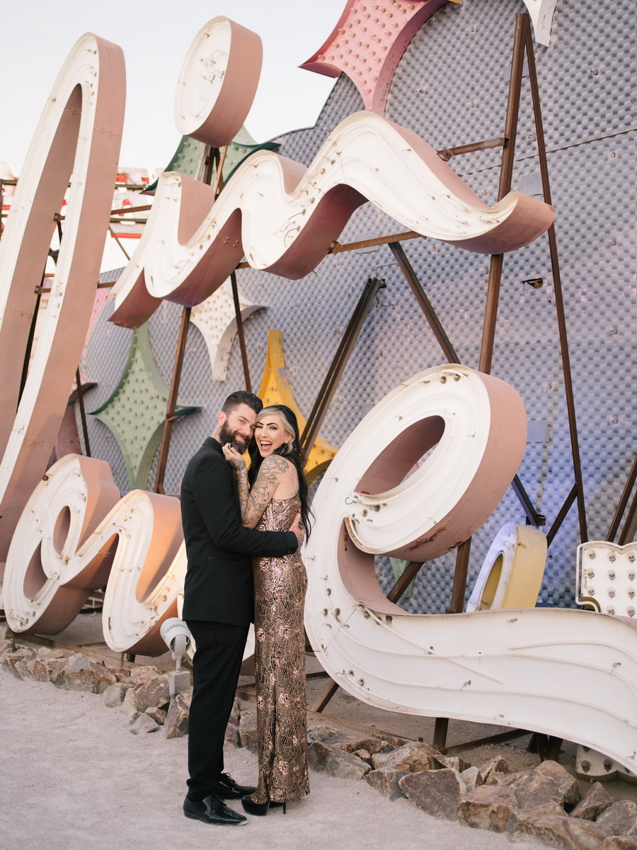 Boneyard- Neon Museum Engagement Photographed with experimental Washi film, and the Pentax 645 z Featured in Rock N Roll Bride rock Related