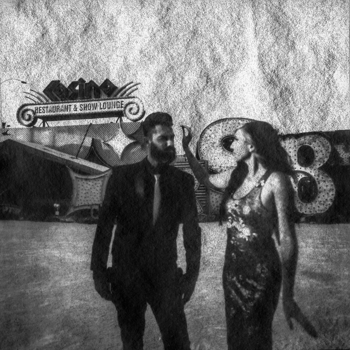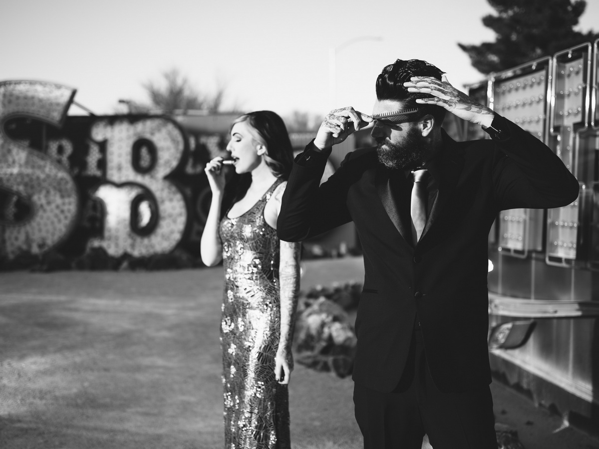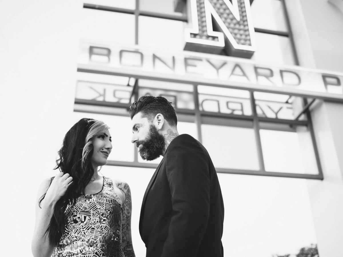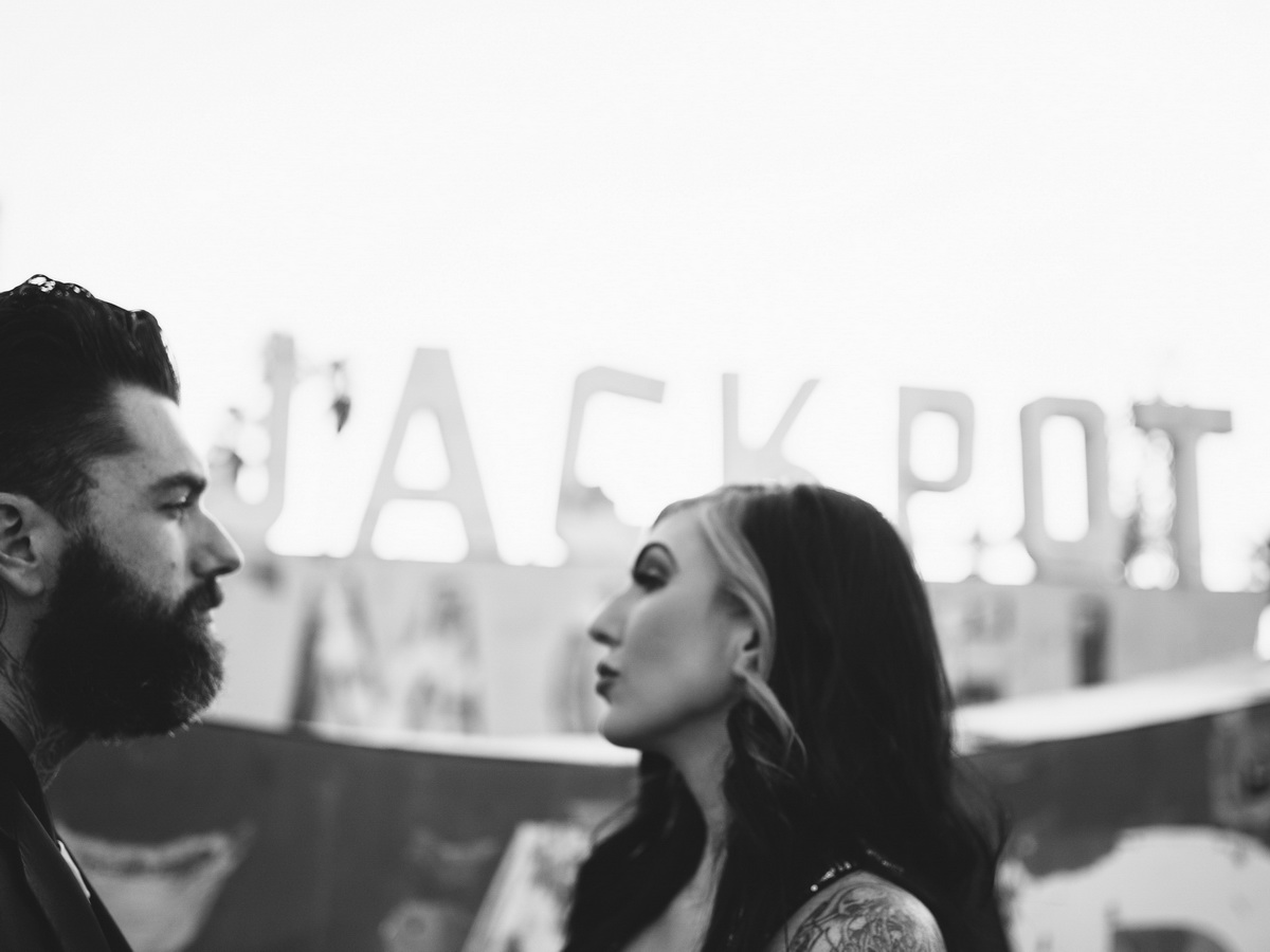 Boneyard- Neon Museum Engagement Photographed with experimental Washi film, and the Pentax 645 z Featured in Rock N Roll Bride rock Related