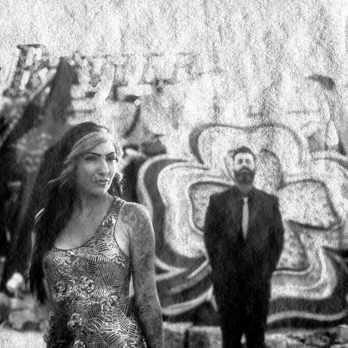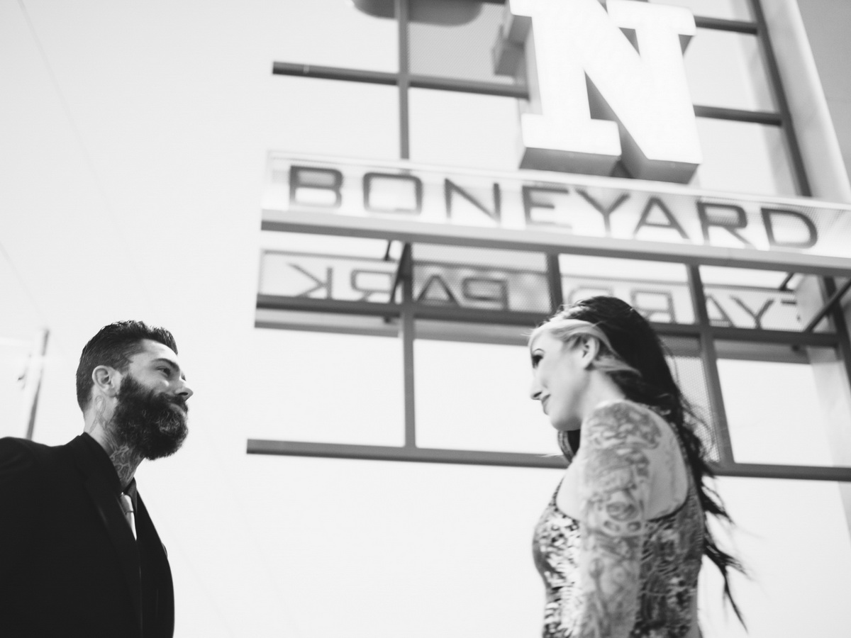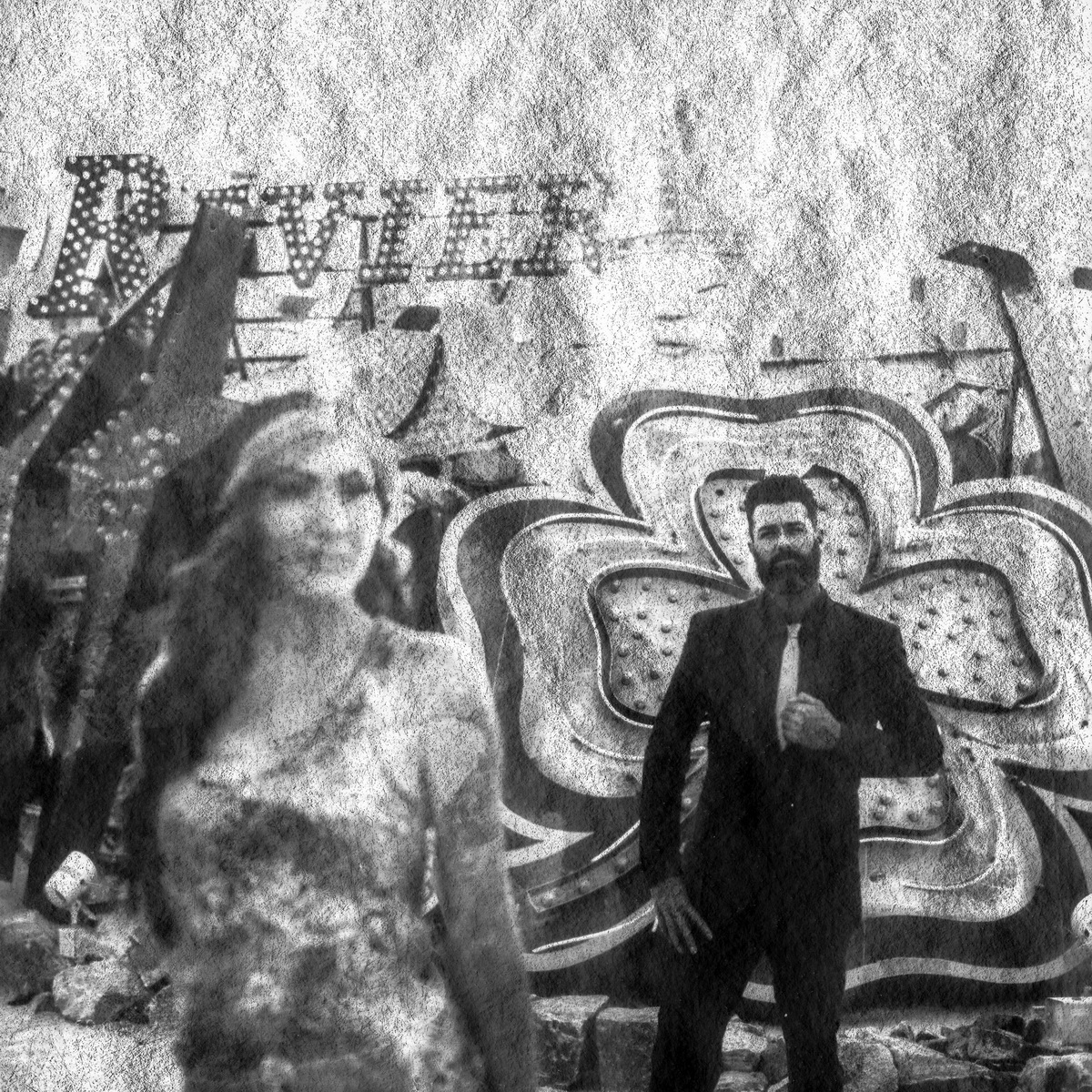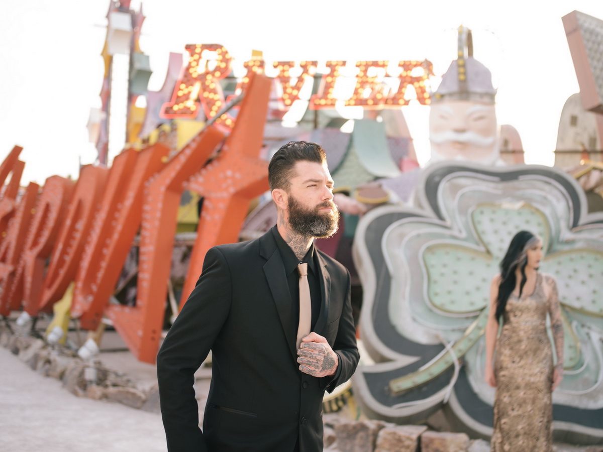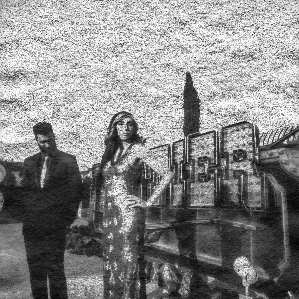 Boneyard- Neon Museum Engagement Photographed with experimental Washi film, and the Pentax 645 z Featured in Rock N Roll Bride rock Related